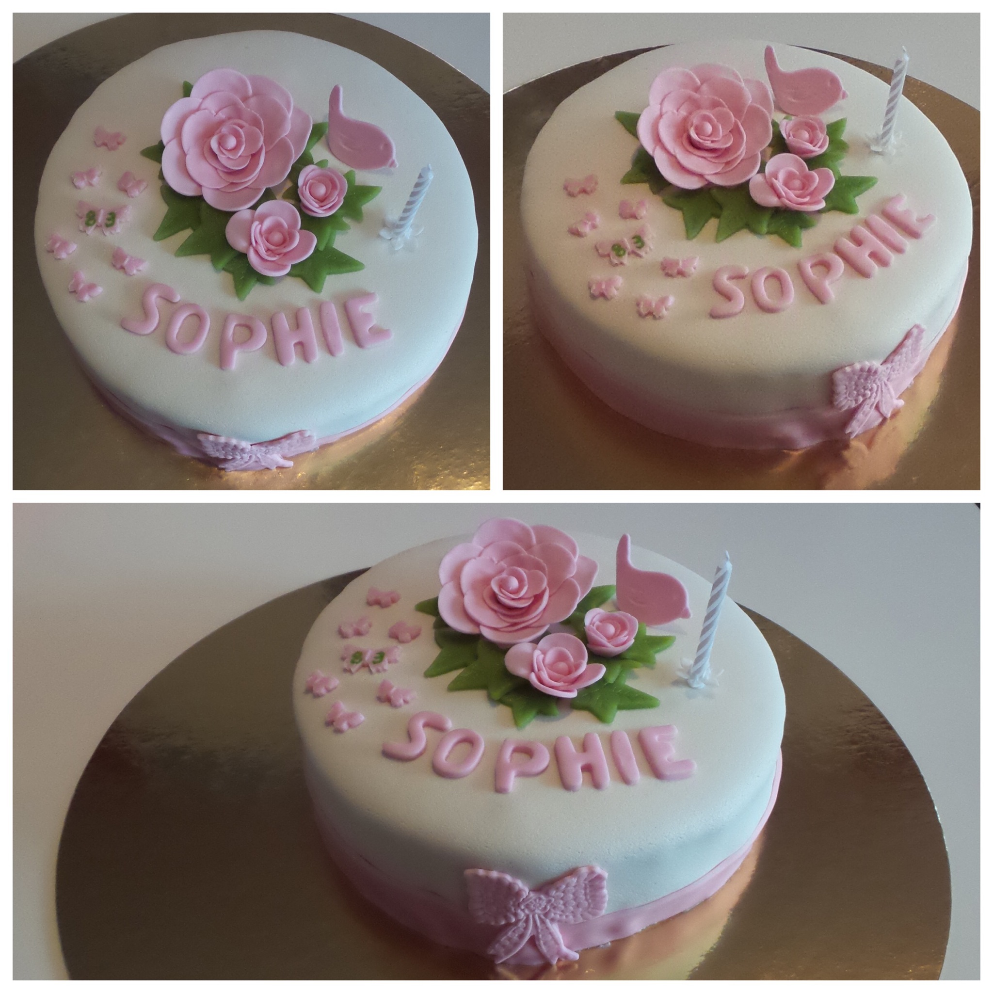 Pour la décoration, le gâteau à été recouvert de pâte d’amandes blanche et les décors ont été réalisés en pâte à sucre.