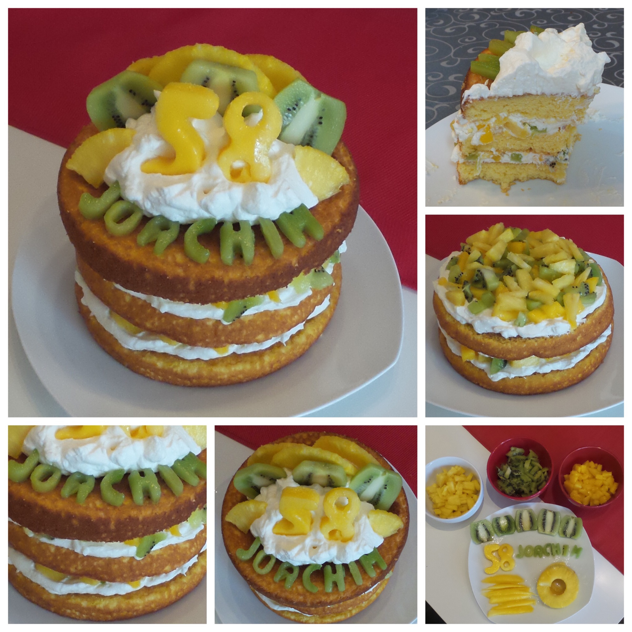 Génoise mousseline imbibée d’un sirop au kirch. Crème aux fruits de la passion. Chantilly chocolat blanc garnie de framboises entières.