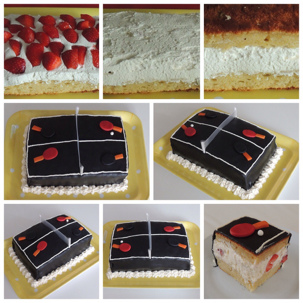Ps pour les pongistes qui liraient cet article : oui les tables de ping-pong noire existent ! Elles ne sont pas que bleues ou vertes. Je préfère prévenir, puisque c’est la première réflexion que m’a fait mon père en voyant le gâteau… Mais grâce à Google, je lui ai prouvé que : « Oui ! Une table de ping-pong noire, ça existe ! » 😉